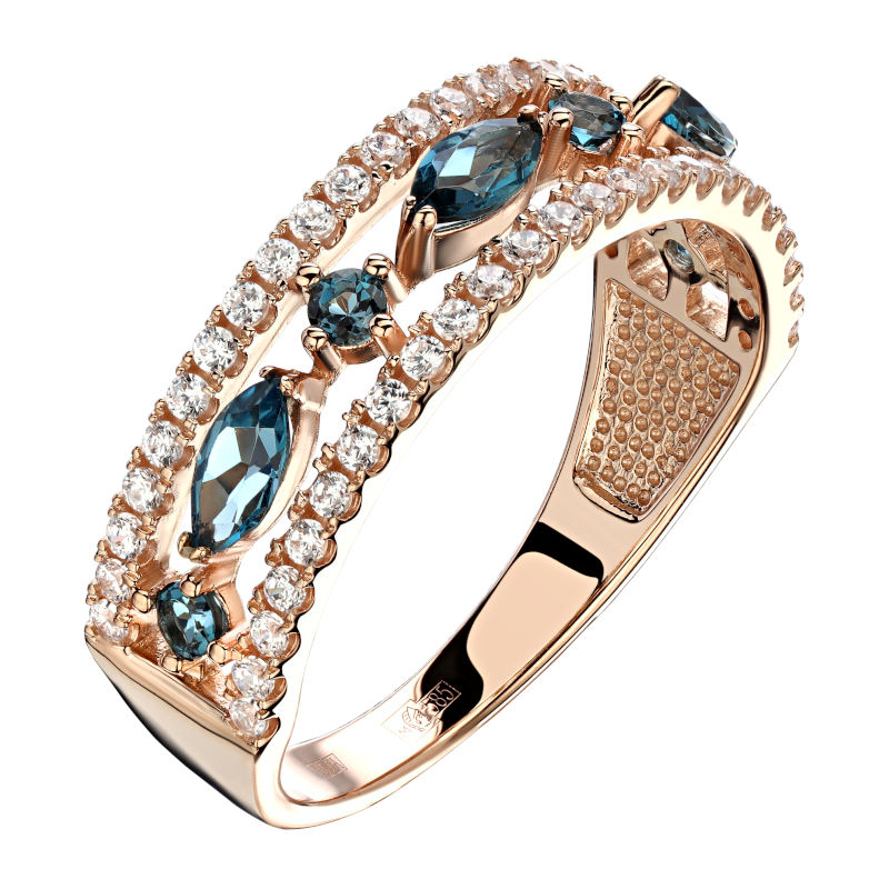 Кольцо из красного золота 585 пробы с топазами и фианитами 01К3113962-3
