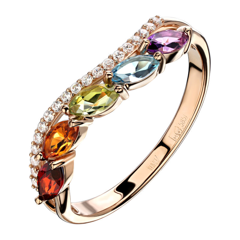 Кольцо из красного золота 585 пробы с цитрином, хризолитом, фианитом, топазом, аметистом и гранатом 01К3113968-2