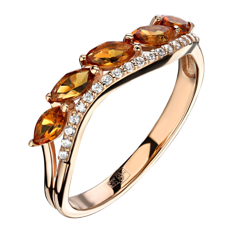 Кольцо из красного золота 585 пробы с цитринами и фианитами 01К3113968-1