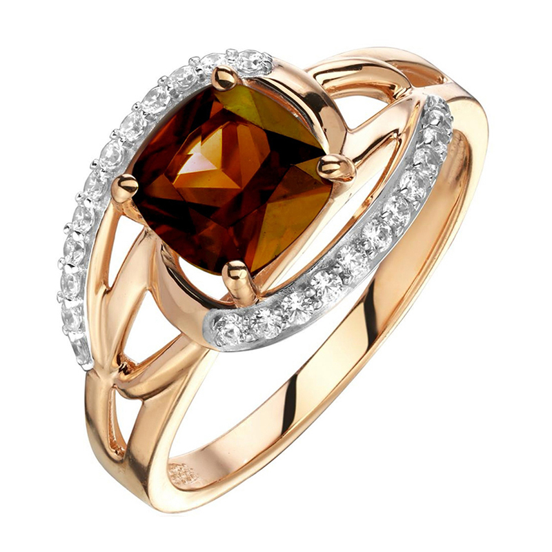 Кольцо из красного золота 585 пробы с раух-топазом и фианитами 01К3115322Р-4