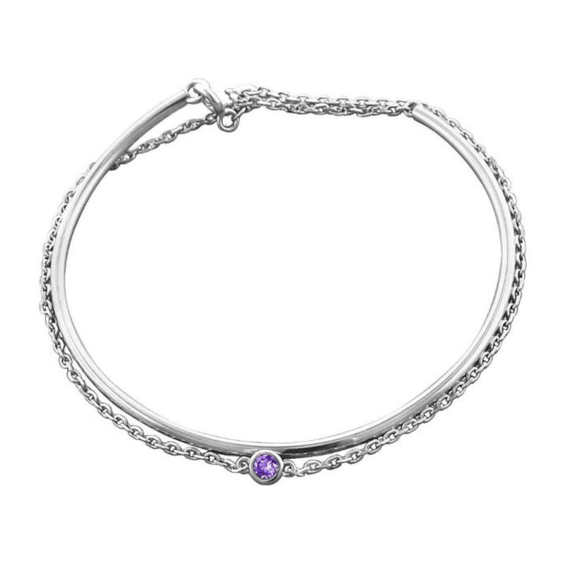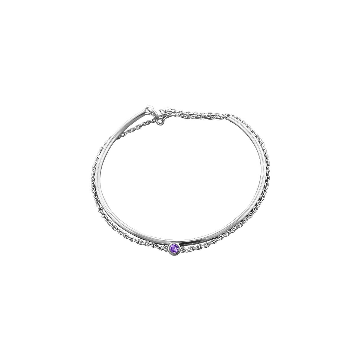 Этот женский браслет изготовлен из белого золота 585 пробы и украшен фианитом насыщенного фиолетового цвета, который привлекает взгляды и добавляет образу нотки загадочности и элегантности. Родировое покрытие обеспечивает дополнительную защиту металла и сохраняет его блеск и свежий вид на длительный срок, подчеркивая изящество изделия.