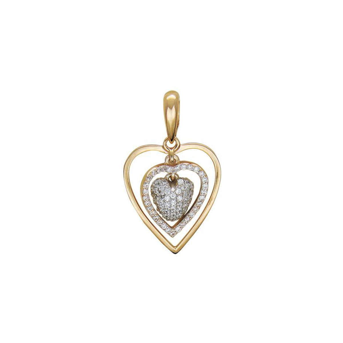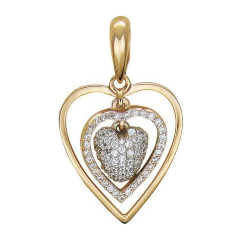 Подвеска из двух цветов золота 585 пробы с фианитами. Символ любви (сердце) – это знак, который помогает выразить чувства, встретить и сохранить нежные отношения. Главное, что помогает обрести любовный талисман — это любовь к себе. Изделия можно купить для себя или подарить в подарок с пожеланием любви, удачи и счастья!