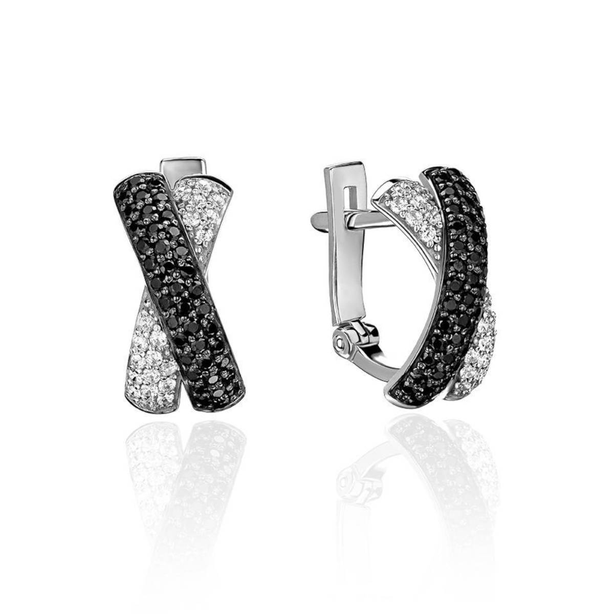 Серьги из белого золота 585 пробы с наношпинелью и фианитами 01С225834-1