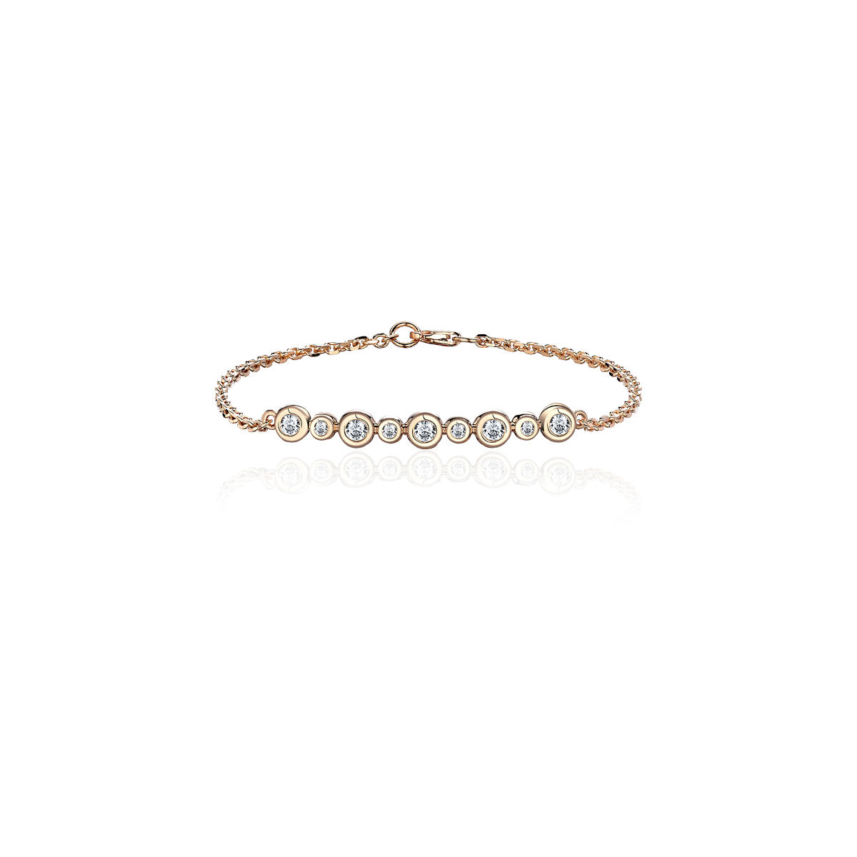 Литьевой браслет из красного золота 585 пробы с фианитами. Полновесное украшение. Браслет собирается звено за звеном. Надежный замок. Украшение вместило достаточное количество деталей, чтобы остаться не замеченным. Вы способны удержаться от комплиментов?