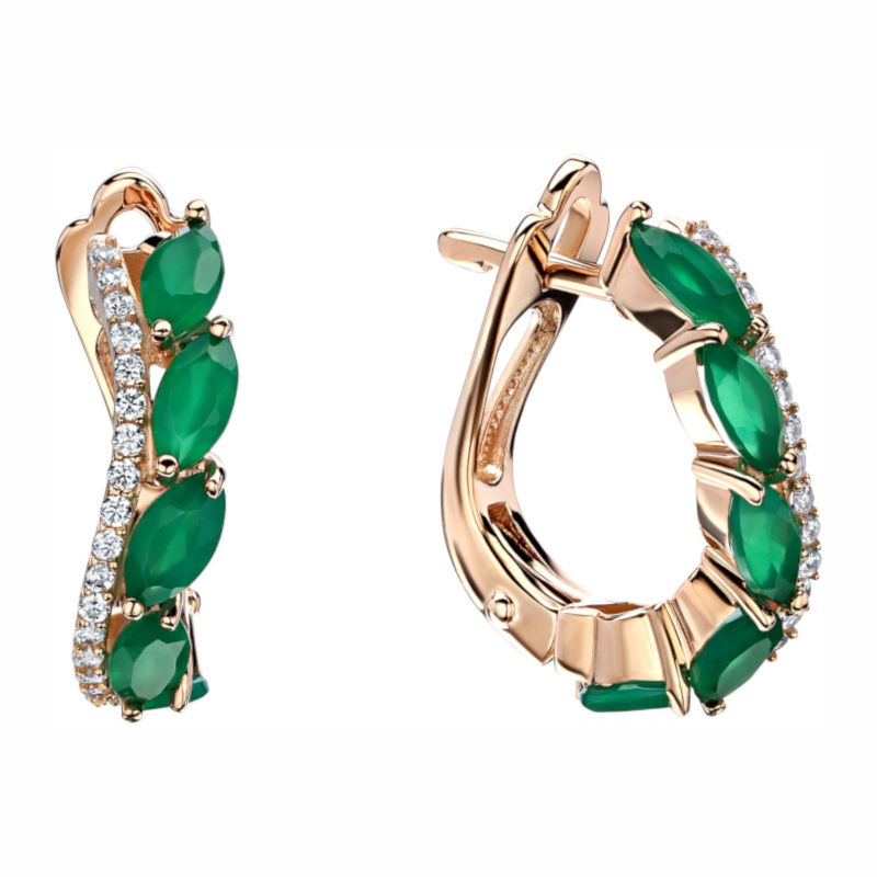 Серьги из красного золота 585 пробы с зелеными агатами и фианитами 01С4115068-1