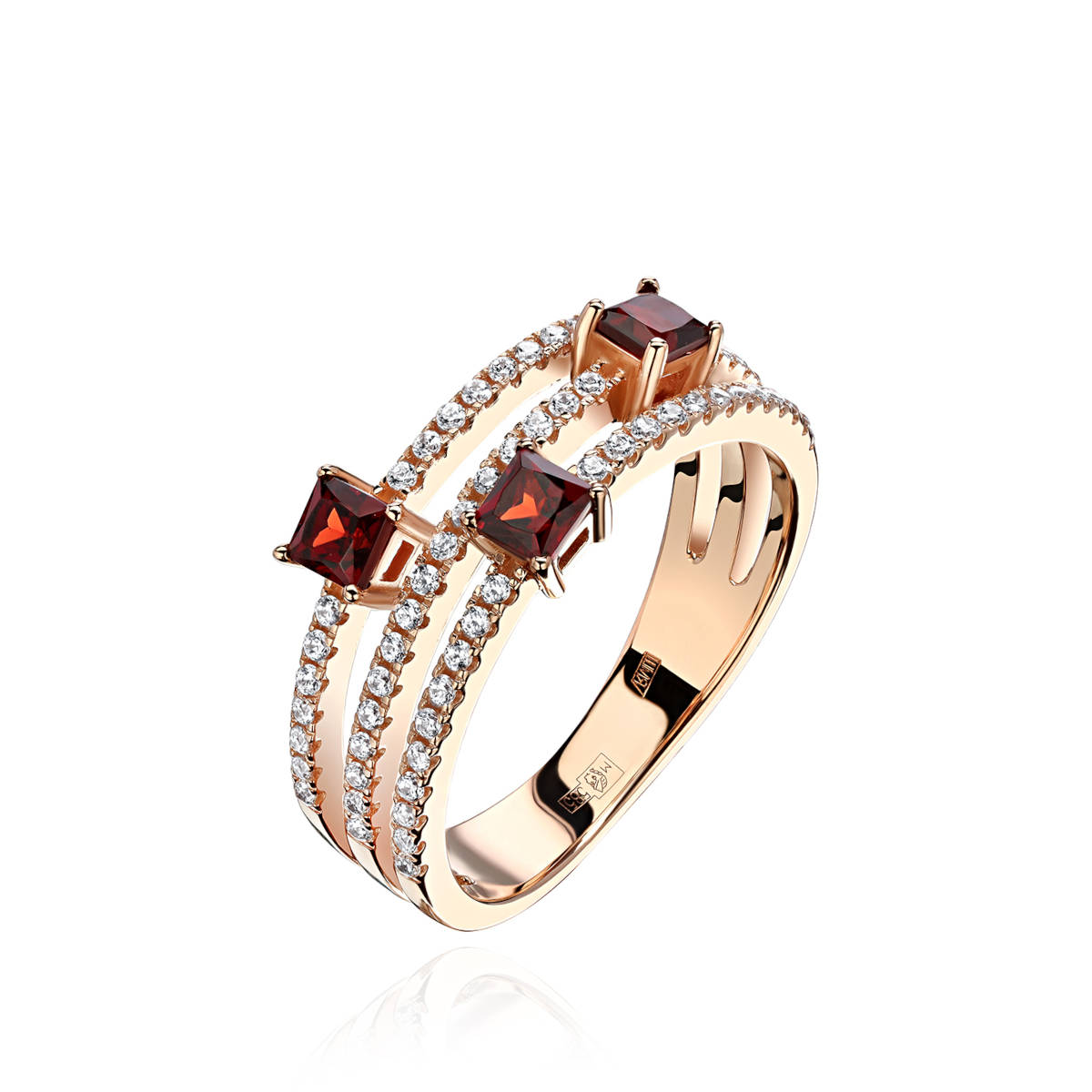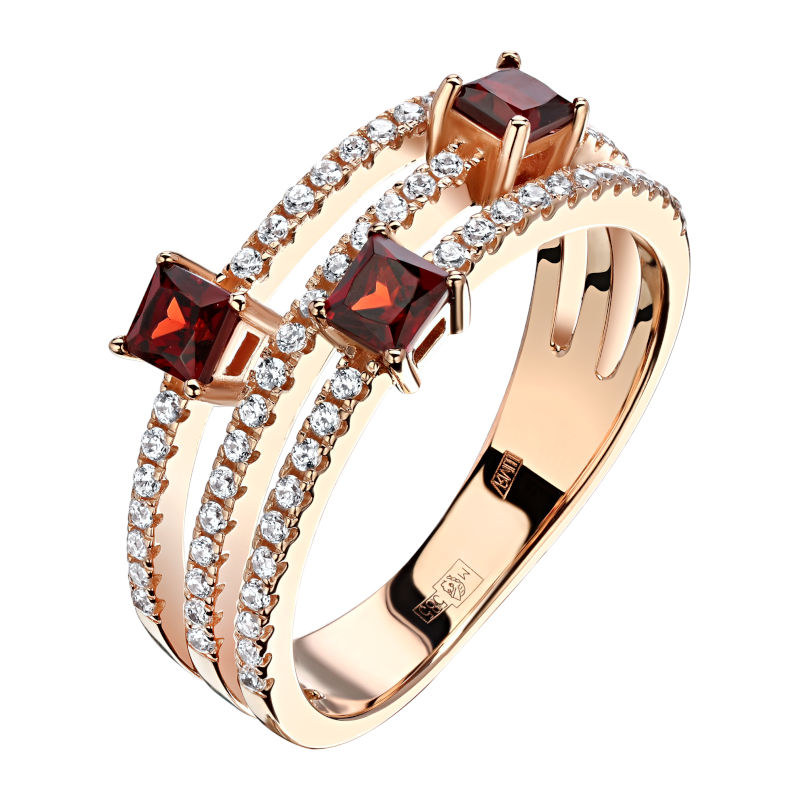 Кольцо из красного золота 585 пробы с гранатами и фианитами 01К3114107-1