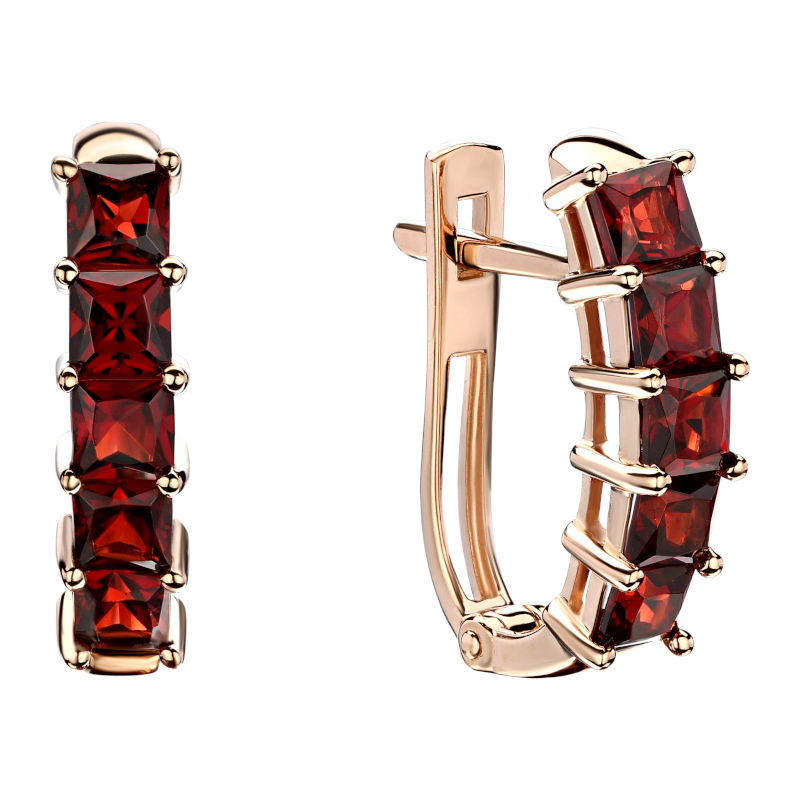 Серьги из красного золота 585 пробы с гранатом 01С3115248-1