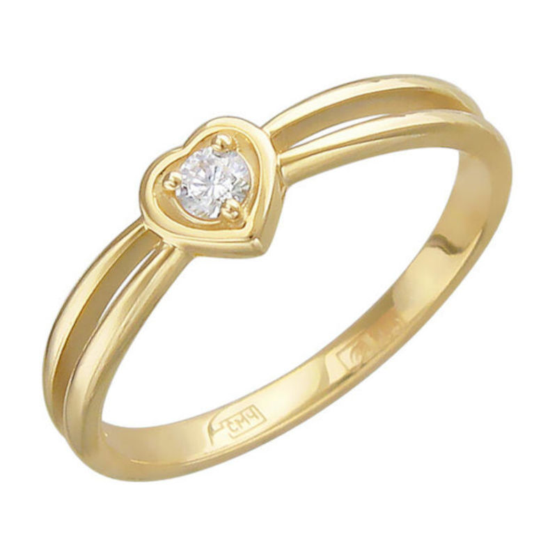 Кольцо из желтого золота 585 пробы c фианитом 01К136808