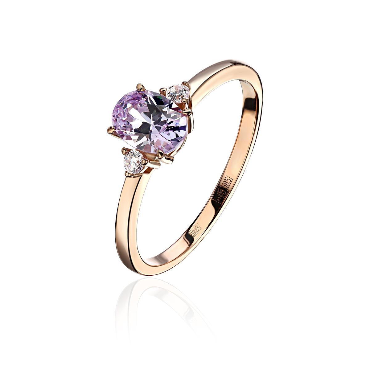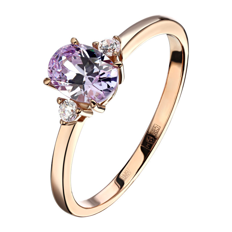 Кольцо из красного золота 585 пробы с синт.шпинелью и фианитом 01К2114075-1