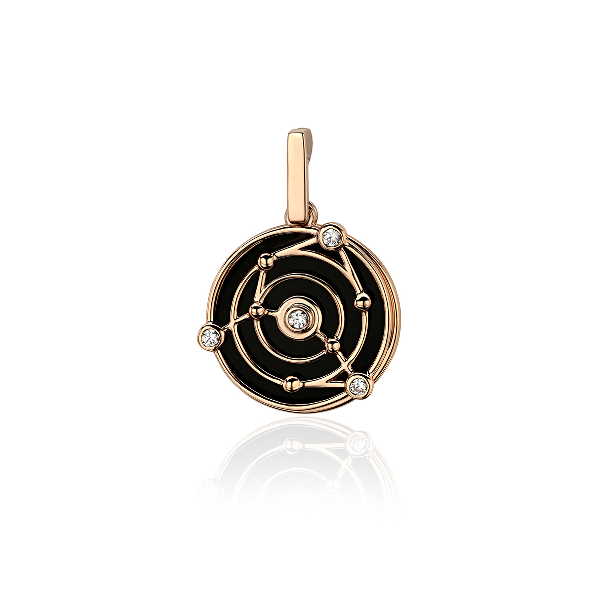 Декоративная подвеска из красного золота 585 пробы с фианитами и эмалью 01П113860Э