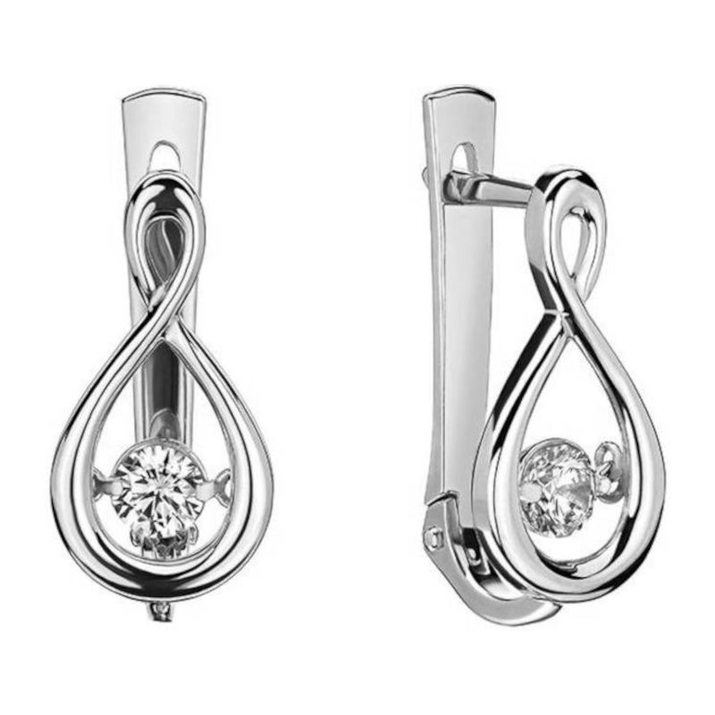 Серьги из белого золота 585 пробы с фианитом. Надежный английский замком привычен и любим многими женщинами. Это базовое украшение с элегантным дизайном, очень комфортное в повседневной носке. Фианит всего лишь был должен заменить алмаз для лабораторий. А получилось, что стал незаменимым атрибутом ювелирных украшений. Самыми популярными являются, конечно же, прозрачные фианиты. Они гармонируют совершенно с любым металлом, с любой формой изделия.