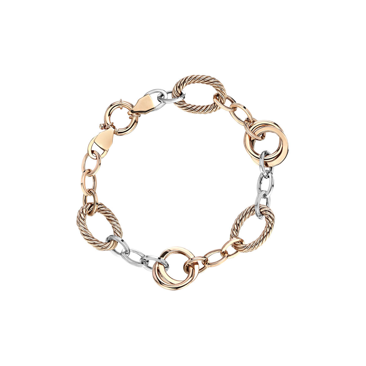 Золотой браслет 585 пробы выполнен из комбинации двух цветов золота, что придаёт ему особую изюминку и делает его универсальным аксессуаром. Такой браслет женский можно носить на любой случай: от повседневной жизни до торжественных мероприятий. Он станет эффектным завершением как смелого, так и классического образа.