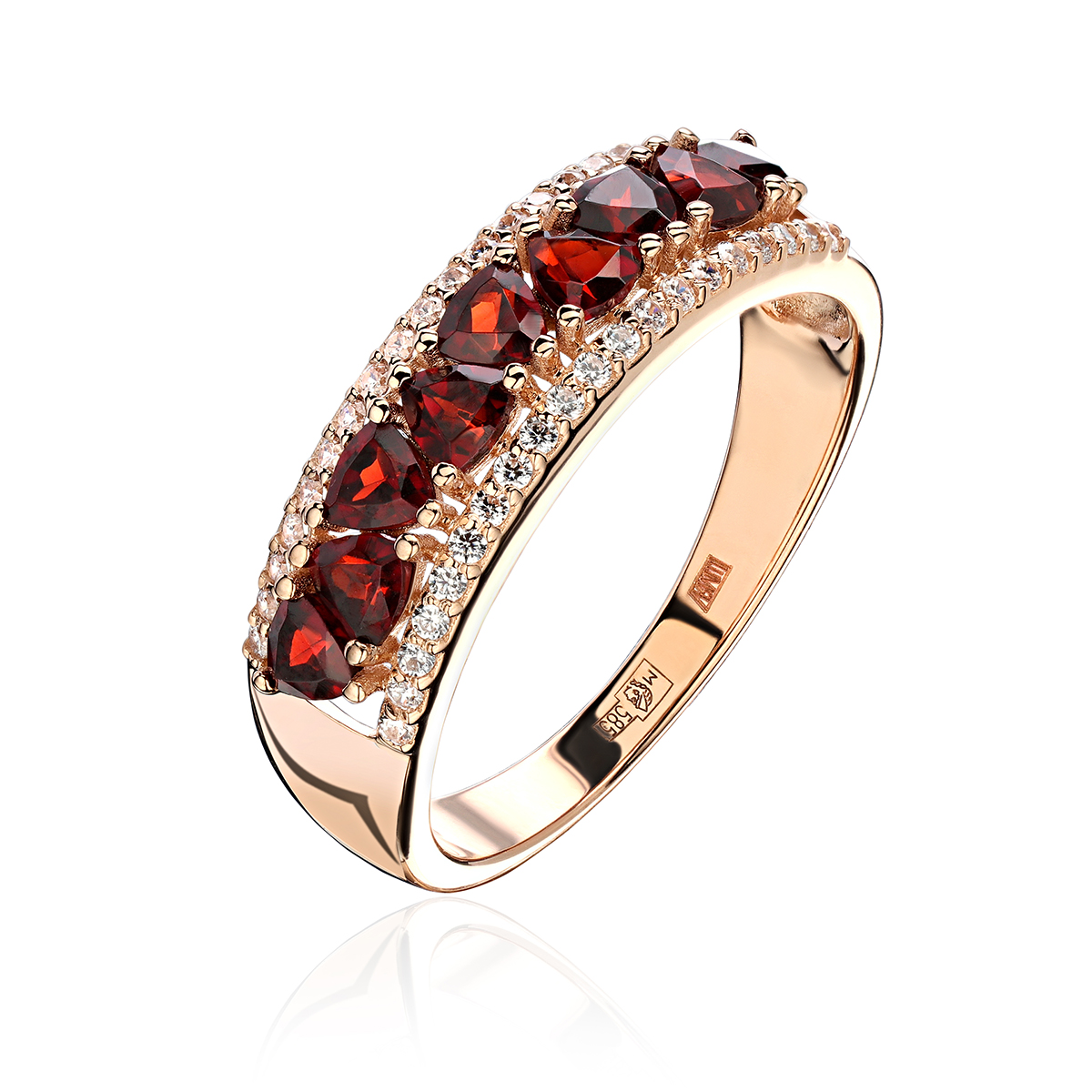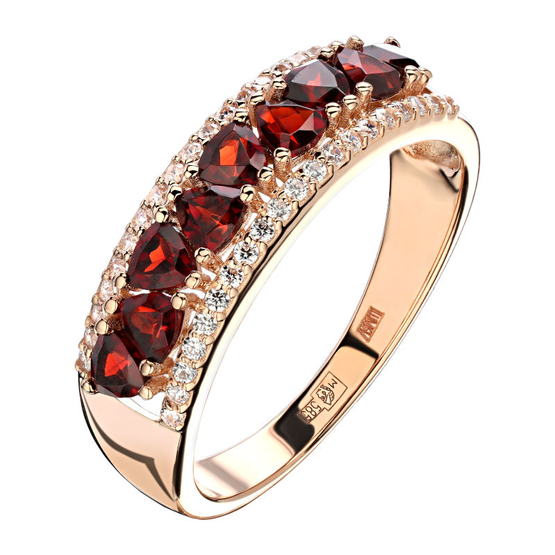 Кольцо из красного золота 585 пробы с фианитом и гранатом 01К3115067-1