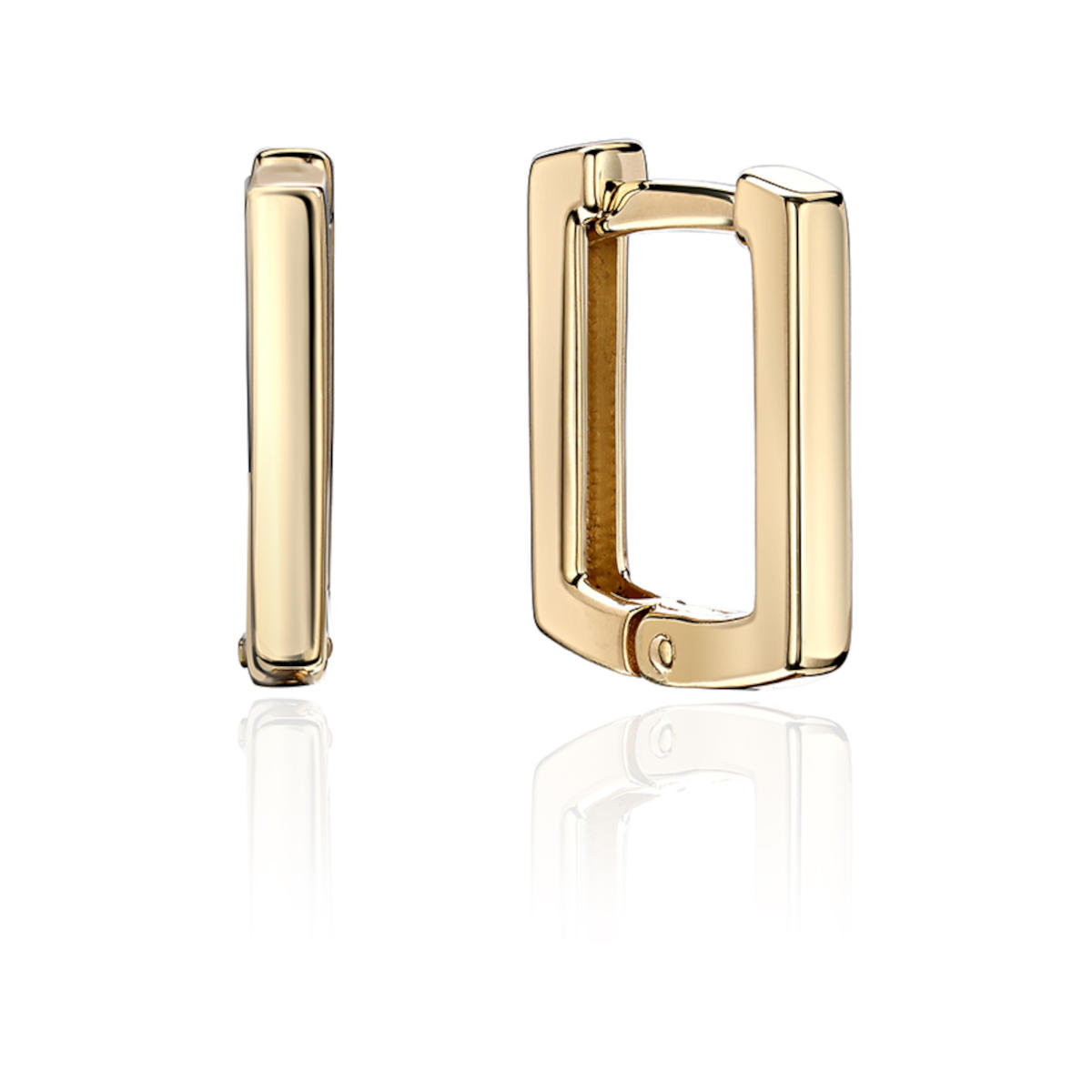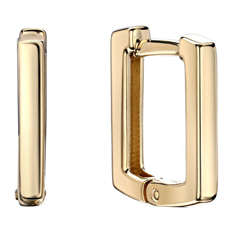 Серьги из желтого золота 585 пробы без вставок. Конго изготавливаются полыми, что делает их очень легкими при внушительном размере. Классическую круглую форму конго заменили углы геометрии.