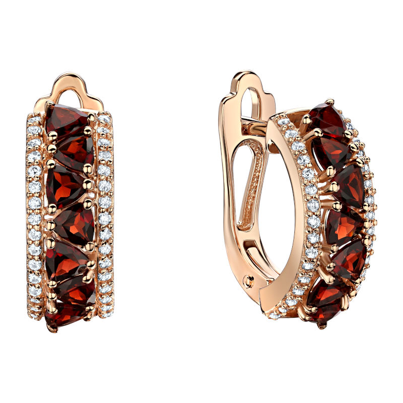 Серьги из красного золота 585 пробы с гранатом и фианитом необходимы для современных девушек. Серьги умеренного диаметра, идеально подойдут на каждый день. Вы можете вести активную жизнь - заниматься спортом, ходить на работу, отдыхать на море и не думать о выборе украшения.