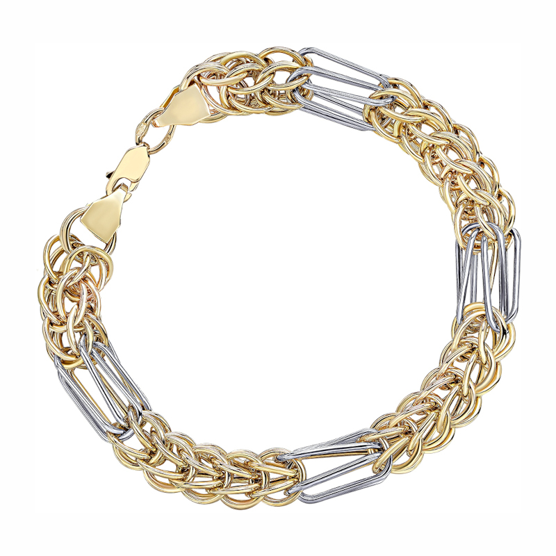 Браслет из комбинированного золота 585 пробы без вставок от Ювелирного дома Эстет – это воплощение современного стиля и элегантности, который отлично дополнит любой образ. Коллекция Fashion, в которую входит этот чудесный женский золотой браслет, идеально отражает актуальные тенденции ювелирной моды. Мы с гордостью представляем изделия, которые ручной работы подчеркивают индивидуальность своей владелицы и становятся настоящим акцентом в любом наряде.