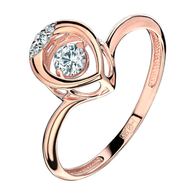 Кольцо из красного золота 585 пробы с танцующим фианитом из коллекции Impulse Gold.  Уникальная закрепка раскрывает всю красоту украшений. Точно выверенный баланс создан с таким расчетом, чтобы изделие следовало за любыми движениями Вашего тела. Покачиваясь, камень превращает световые лучи в завораживающие радужные вспышки огня. Это истинное волшебство, которого достойна настоящая Женщина!