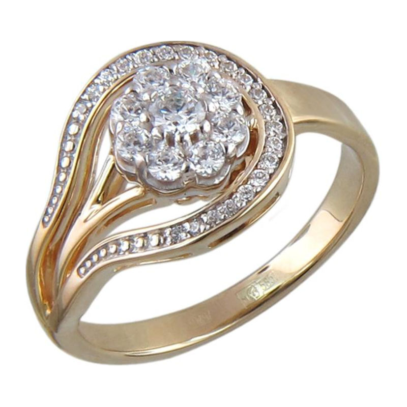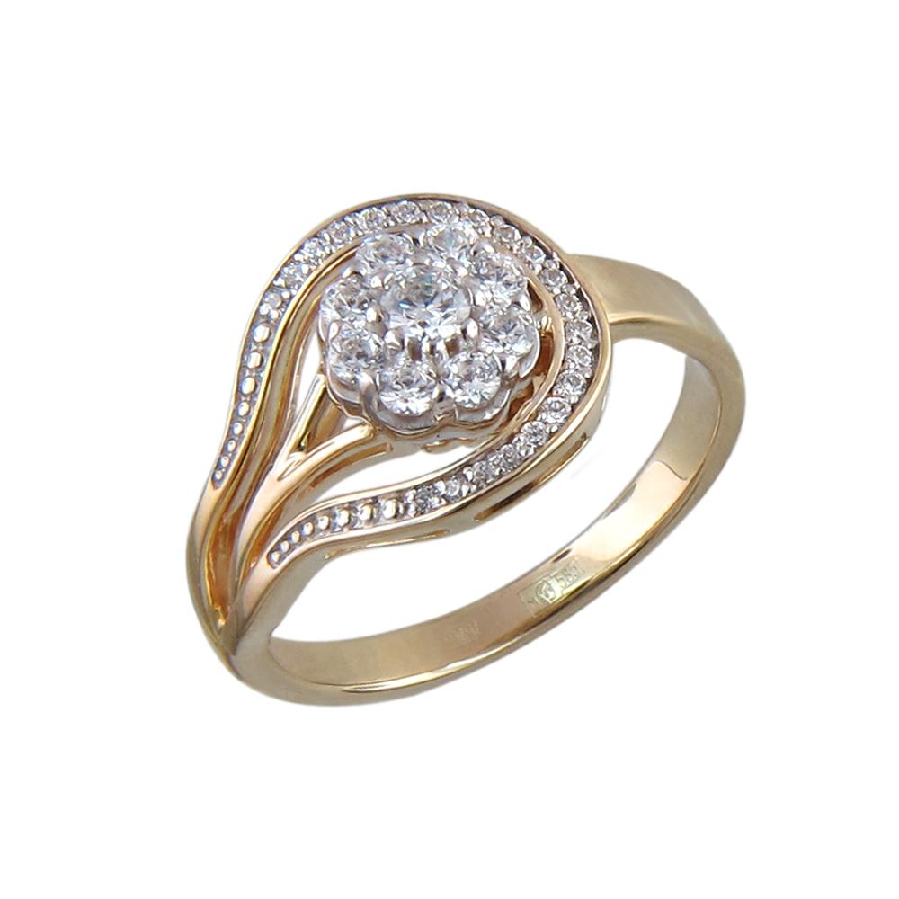 Кольцо из двух цветов золота 585 пробы с фианитами 01К168614Ж