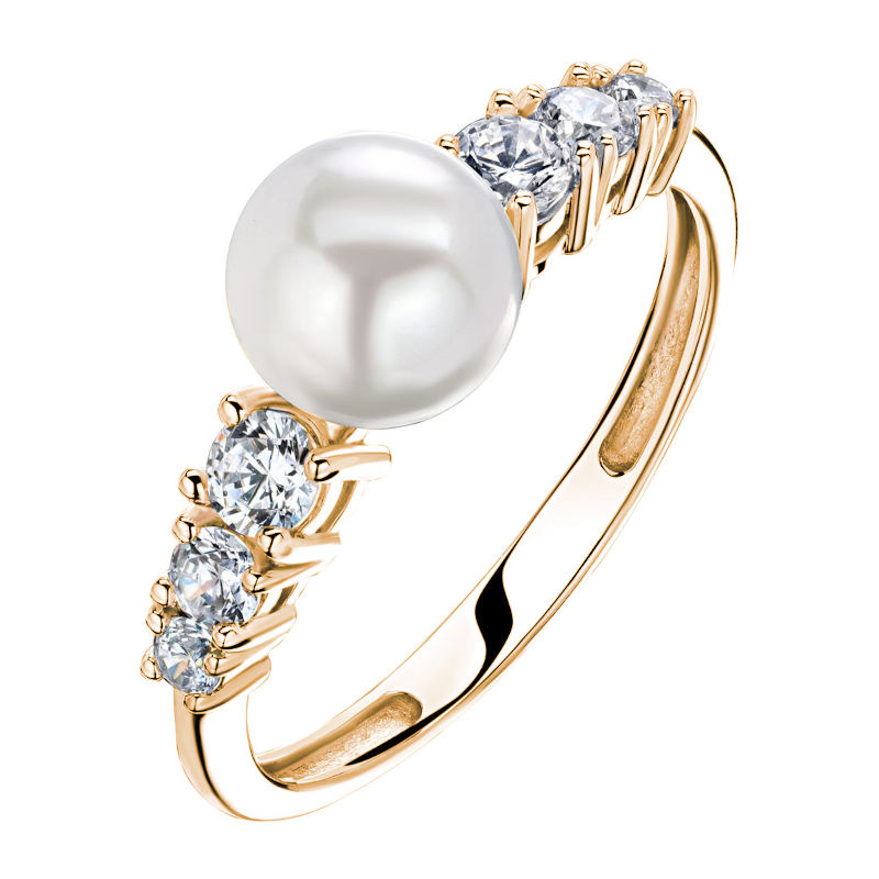 Кольцо из красного золота 585 пробы с жемчугом и фианитами 01К3113113-1