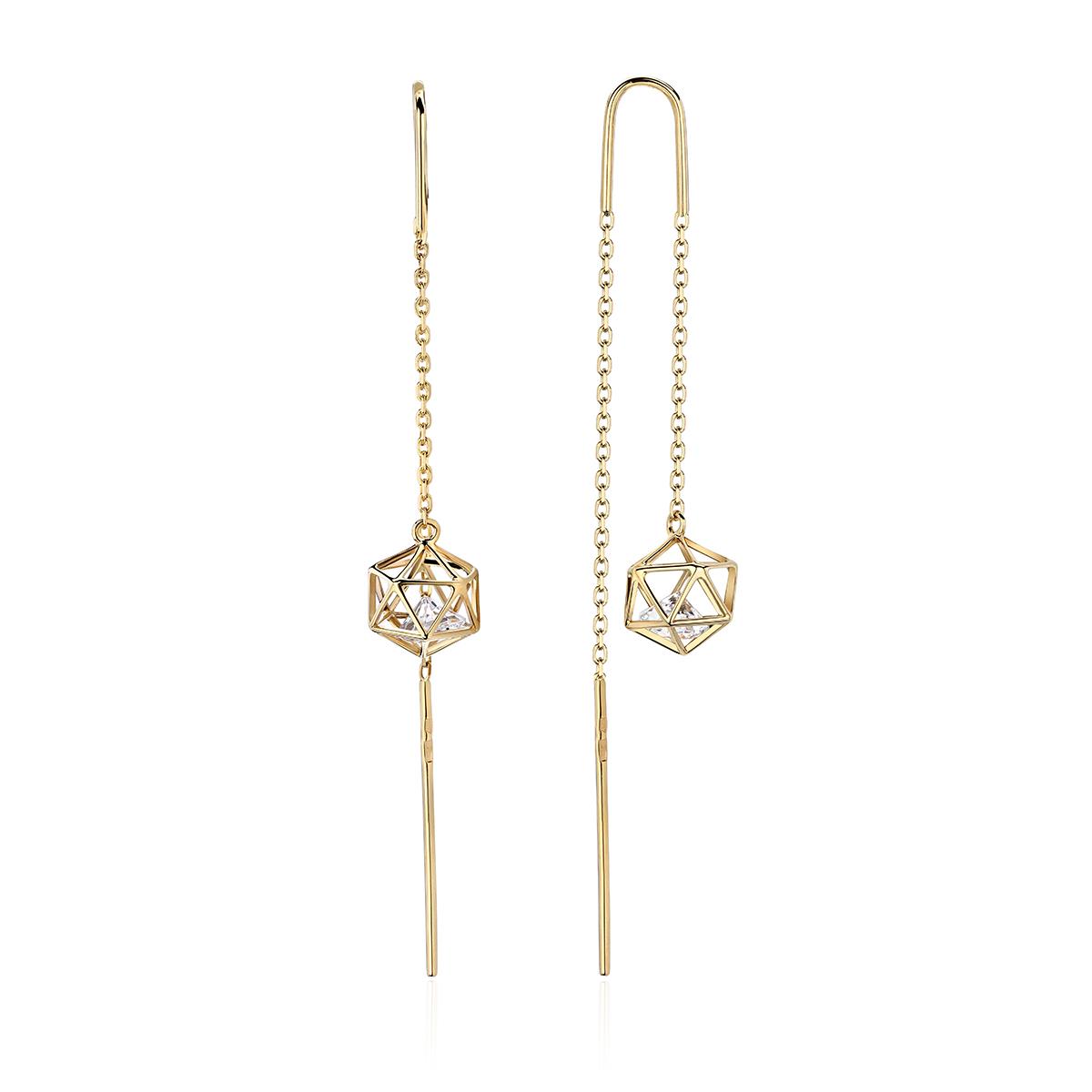 Серьги из желтого золота 585 пробы с фианитом. Сегодня сочетание золота и фианита уже считается классикой. Роскошный блеск фианита привлекает взгляды, а оригинальный дизайн вносит в образ нотку элегантности. Самые смелые решения дизайнеров воплощаются в современных украшениях.