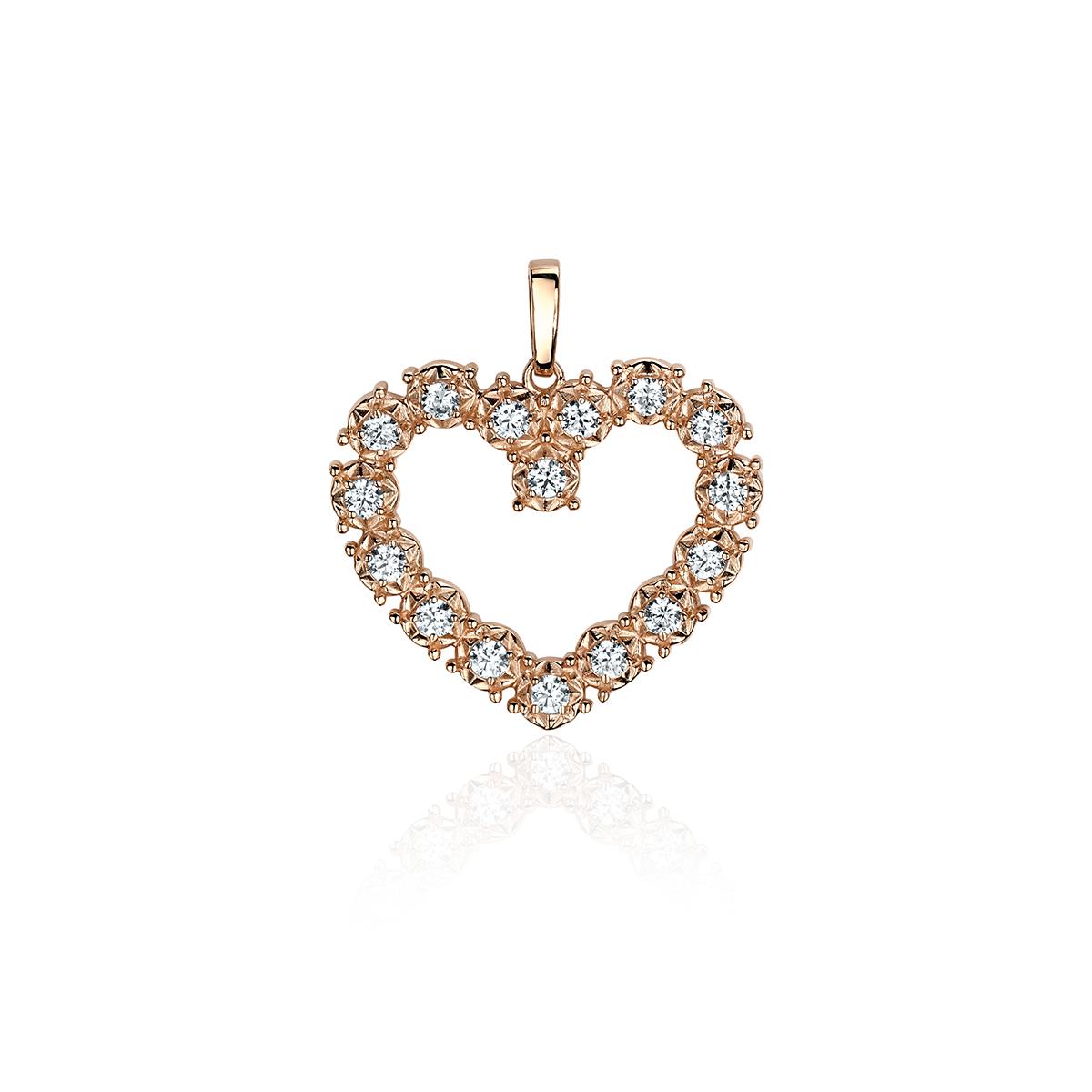 Подвеска "Сердце" из красного золота 585 пробы с фианитами 01П1131005