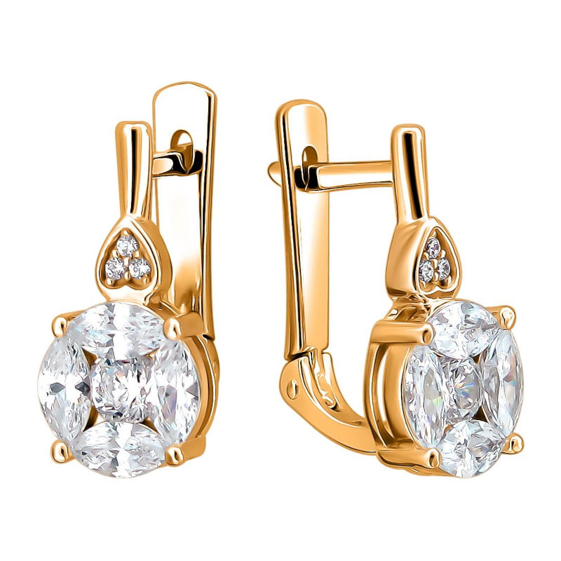 Серьги из красного золота 585 пробы с фианитом. Сегодня сочетание золота и фианита уже считается классикой. Роскошный блеск фианита привлекает взгляды, а оригинальный дизайн вносит в образ нотку элегантности. Самые смелые решения дизайнеров воплощаются в современных украшениях.