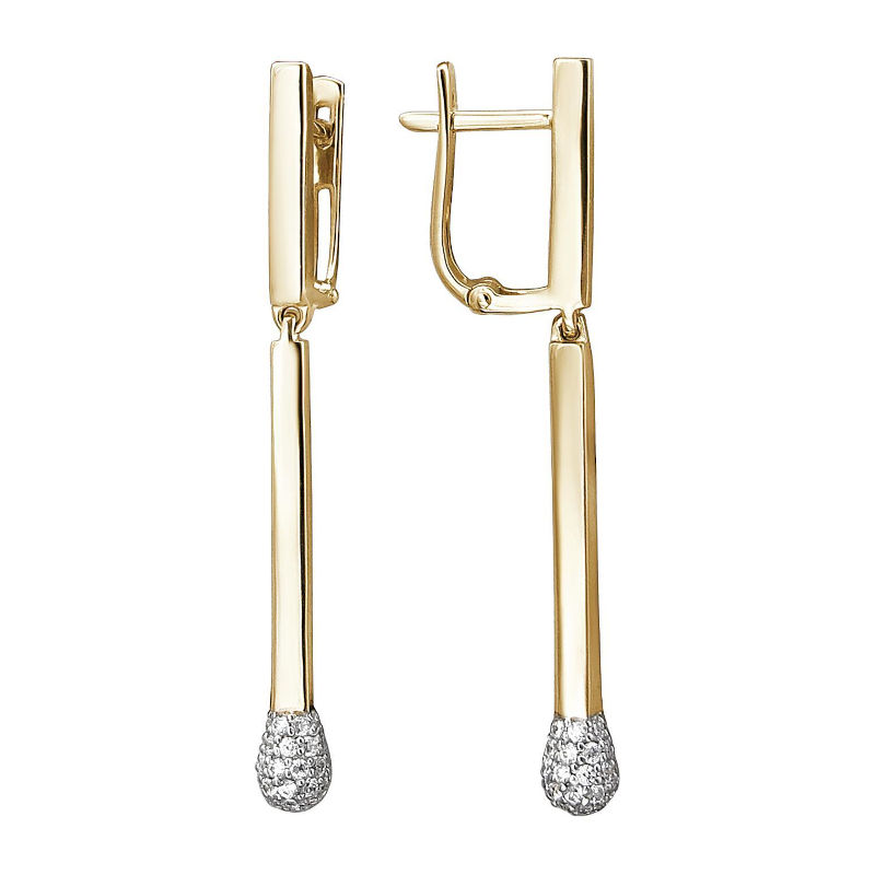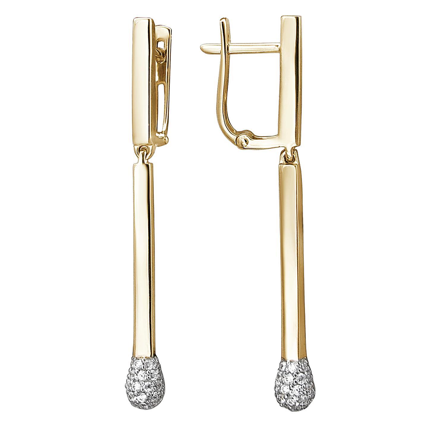 Серьги из желтого золота 585 пробы с бриллиантами 01С6313179Р Серьги в форме спички. Надежный английский замок привычен и любим женщинами.