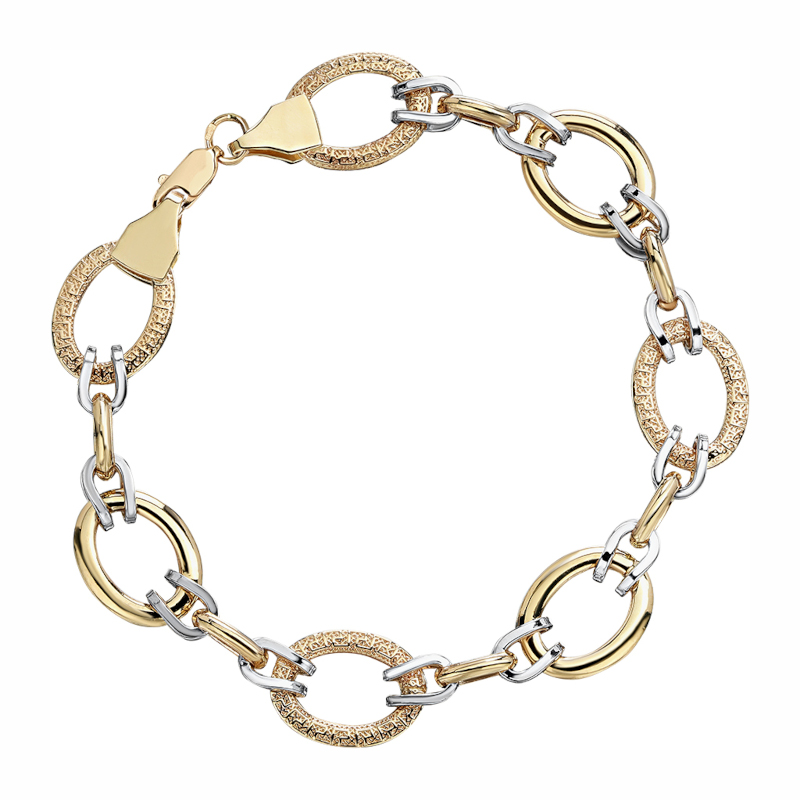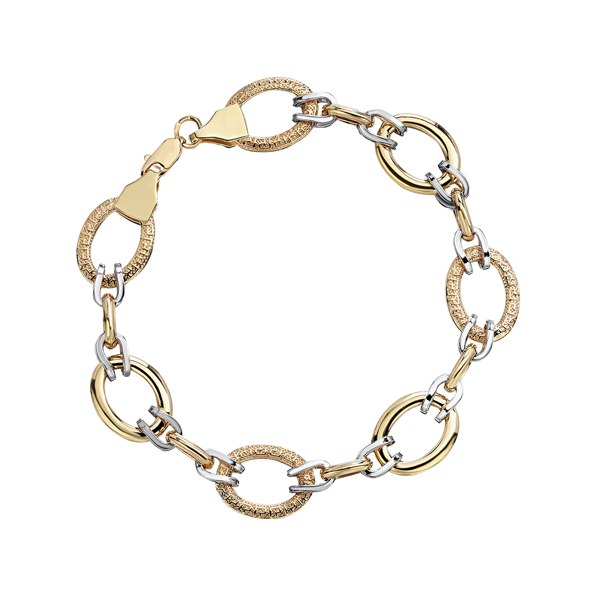 Золотой браслет 585 пробы выполнен из комбинации двух цветов золота, что придаёт ему особую изюминку и делает его универсальным аксессуаром. Такой браслет женский можно носить на любой случай: от повседневной жизни до торжественных мероприятий. Он станет эффектным завершением как смелого, так и классического образа.