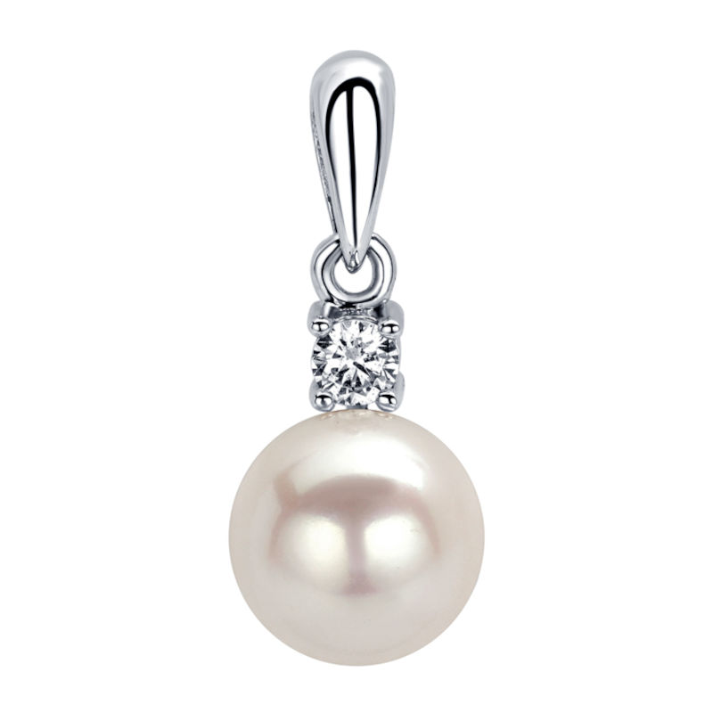 Подвеска из белого золота 585 пробы с жемчугом и фианитами 01П3213112-1