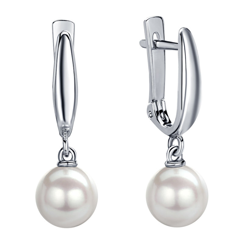 Серьги из белого золота 585 пробы с жемчугом 01С3213114-1