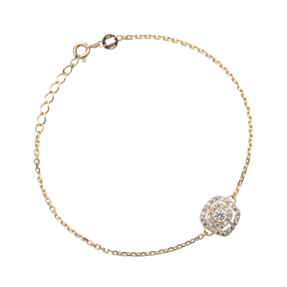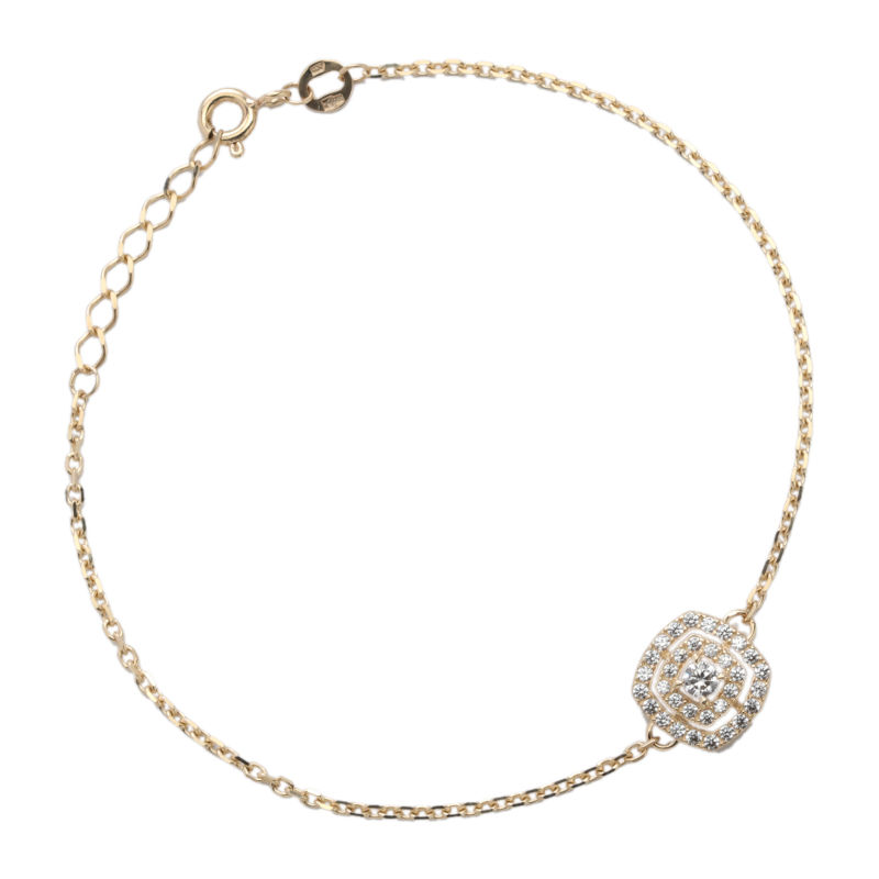 Изящный браслет из желтого золота 585 пробы, украшенный сверкающими фианитами, станет прекрасным дополнением вашего украшения и подчеркнет индивидуальный стиль. Каждое изделие изготовлено с вниманием к деталям и высоким качеством, что гарантирует его долговечность и привлекательный внешний вид. Благодаря классической элегантной стилистике, этот браслет идеально подойдет как для повседневного ношения, так и для особых случаев.