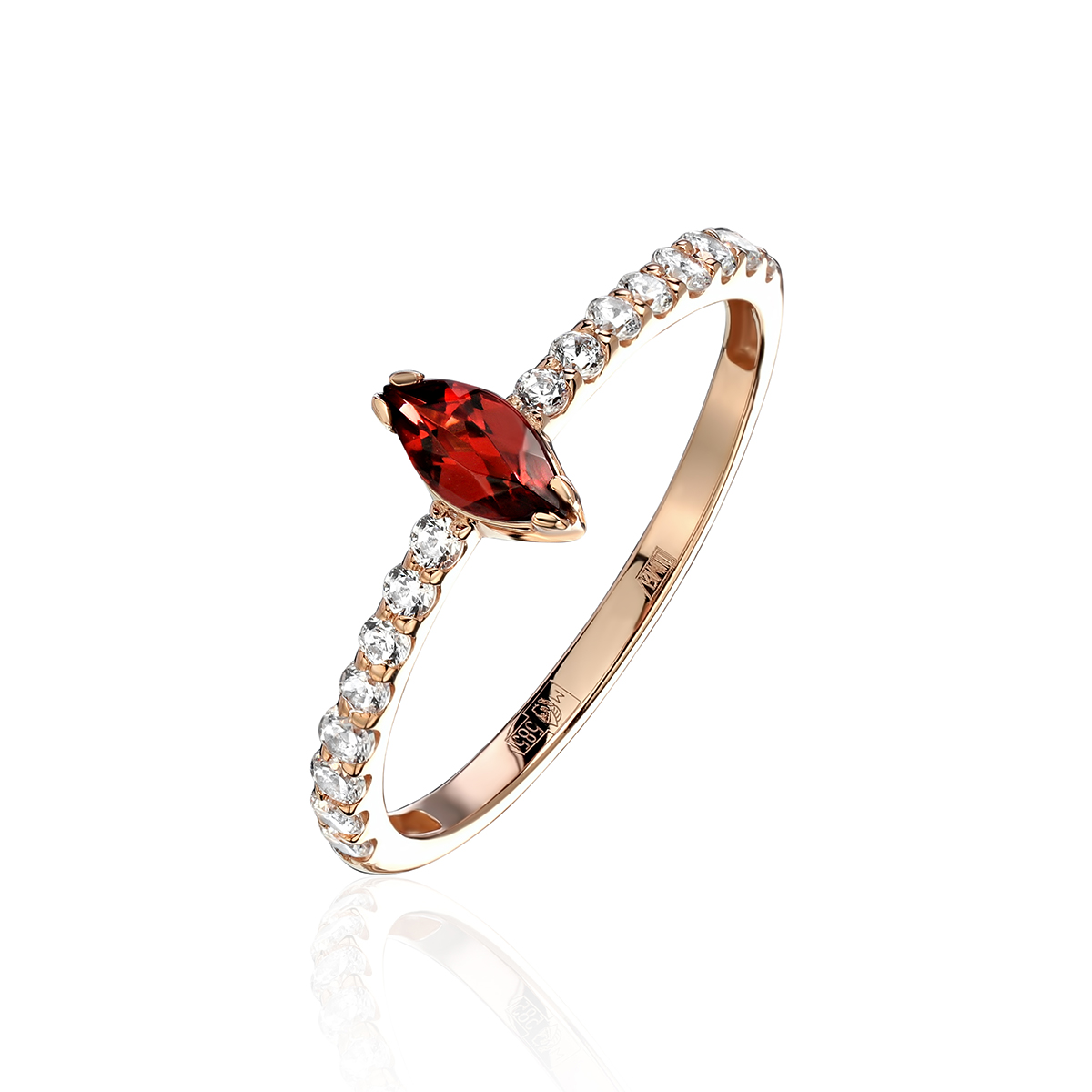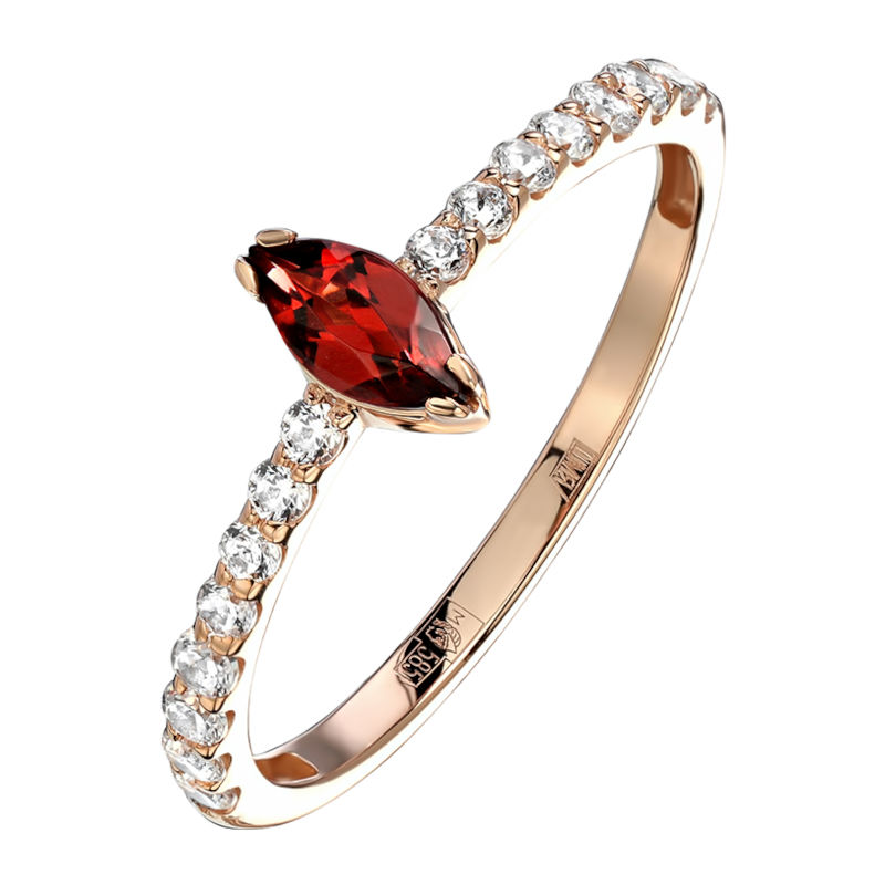 Кольцо из красного золота 585 пробы с гранатом и фианитами 01К3115061-3