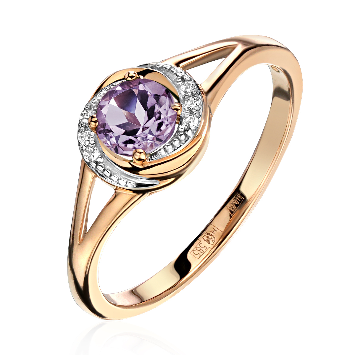 Кольцо из красного золота 585 пробы с аметистом и фианитами 01К3115273Р-1