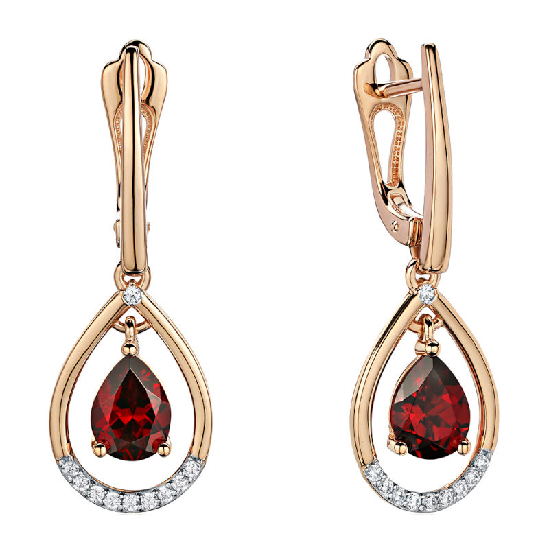 Серьги из красного золота 585 пробы с фианитом и гранатом 01С3115278Р-2