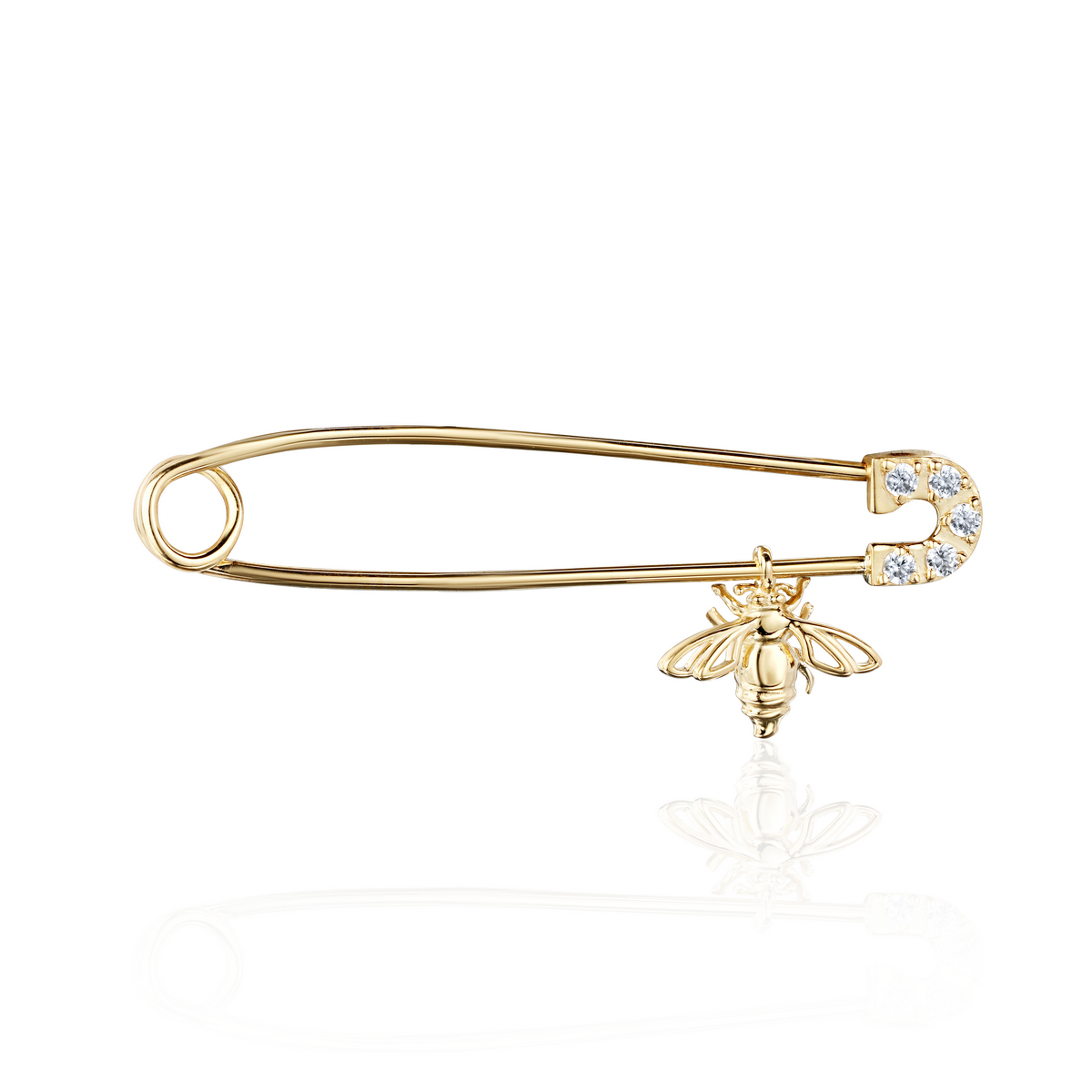 Брошь из желтого золота 585 пробы с фианитом