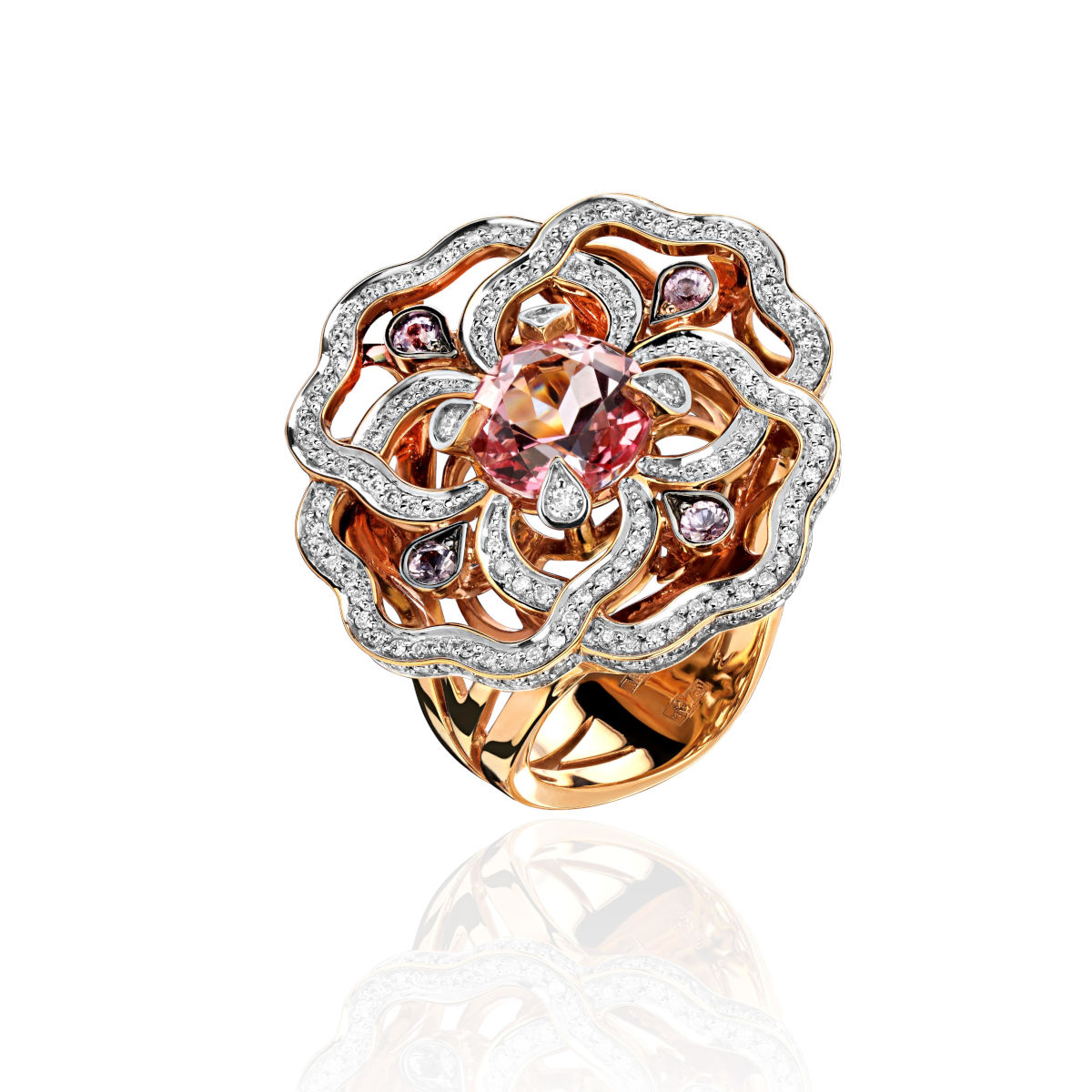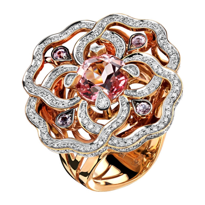 Кольцо из комбинированного золота 750 пробы с бриллиантами, топазом и сапфирами 01К6071097-1