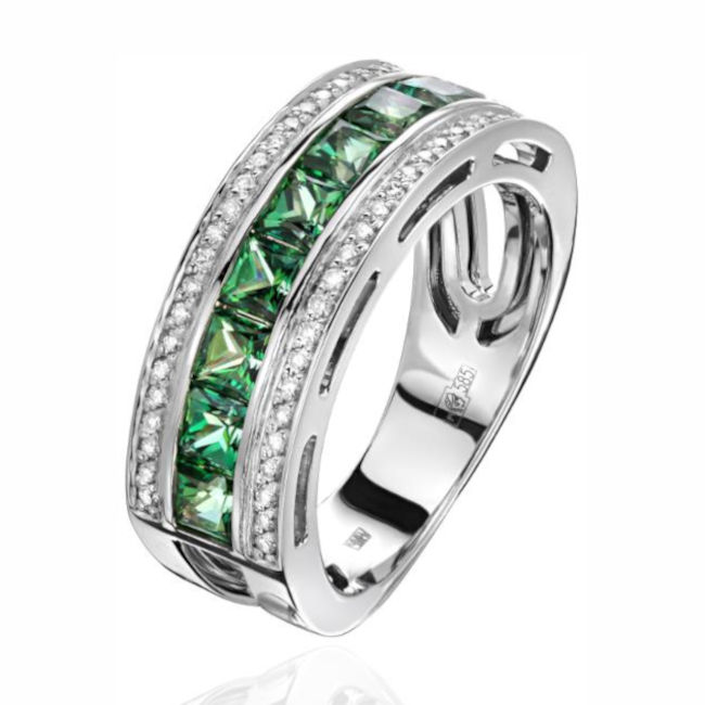 Кольцо из белого золота 585 пробы с топазом и бриллиантами 01К6211874-7