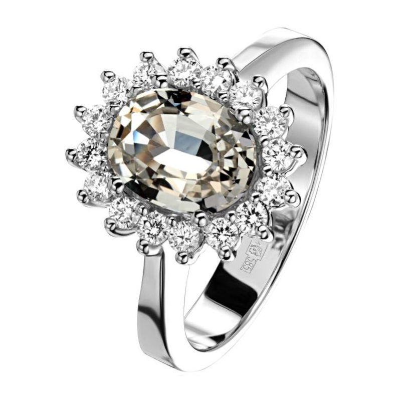 Кольцо из белого золота 585 пробы с сапфиром и бриллиантами 01К6213095-7