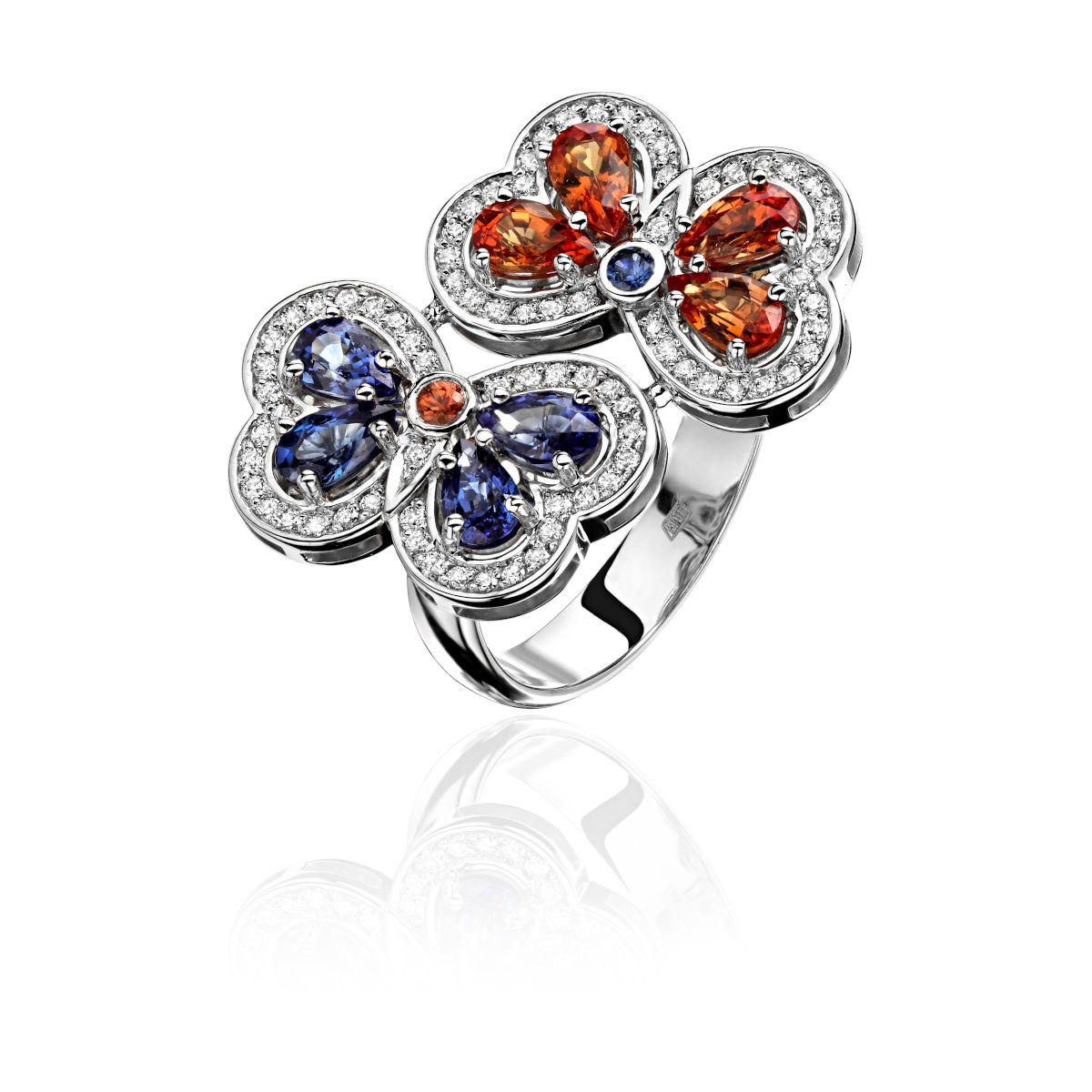 Кольцо из белого золота 585 пробы с бриллиантами и сапфирами 01К6214093-6