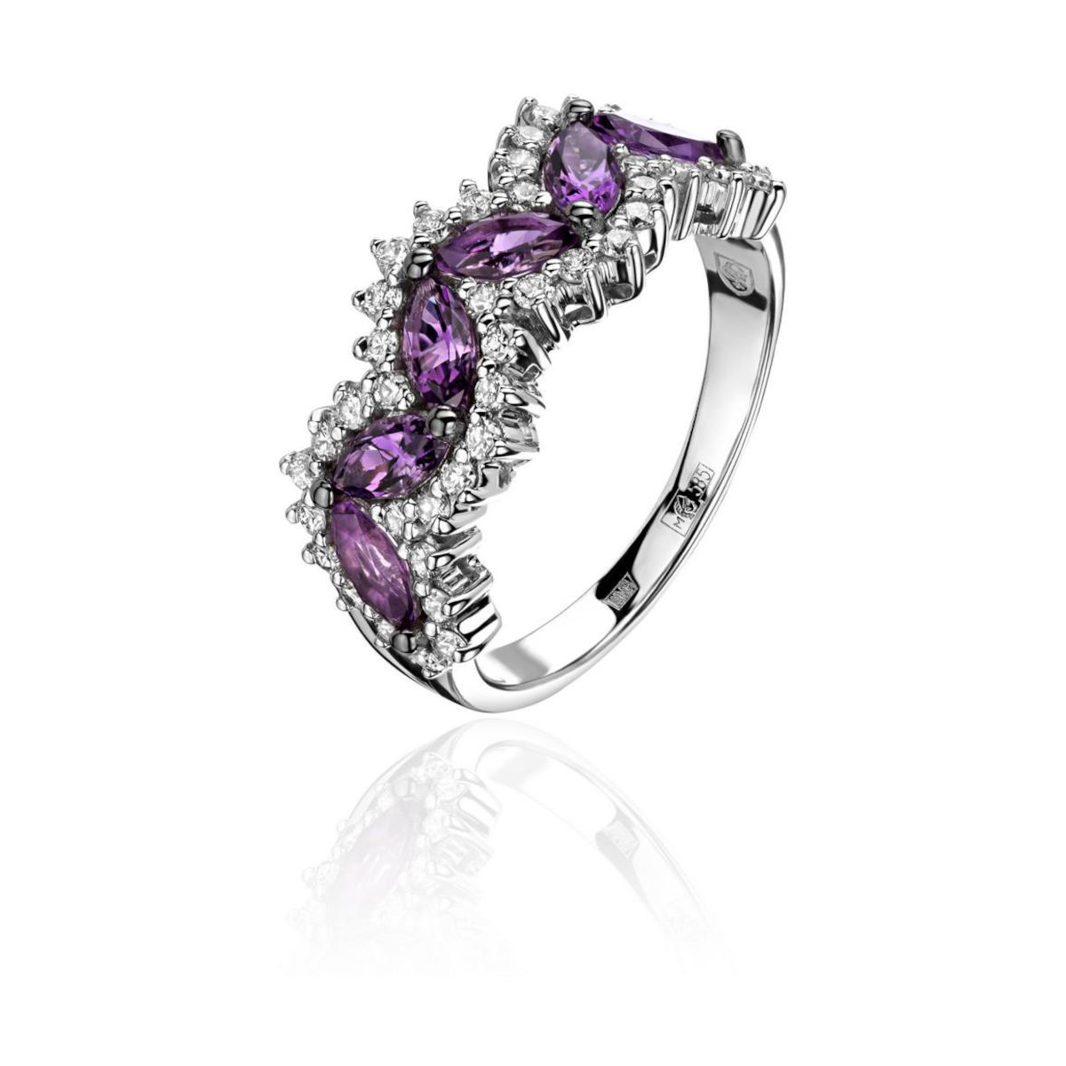 Кольцо из белого золота 585 пробы с бриллиантами и аметистами 01К6213217-4
