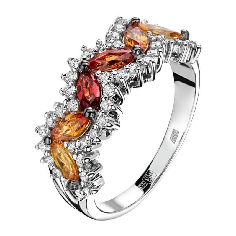 Кольцо из белого золота 585 пробы с бриллиантами и сапфирами 01К6213217-6