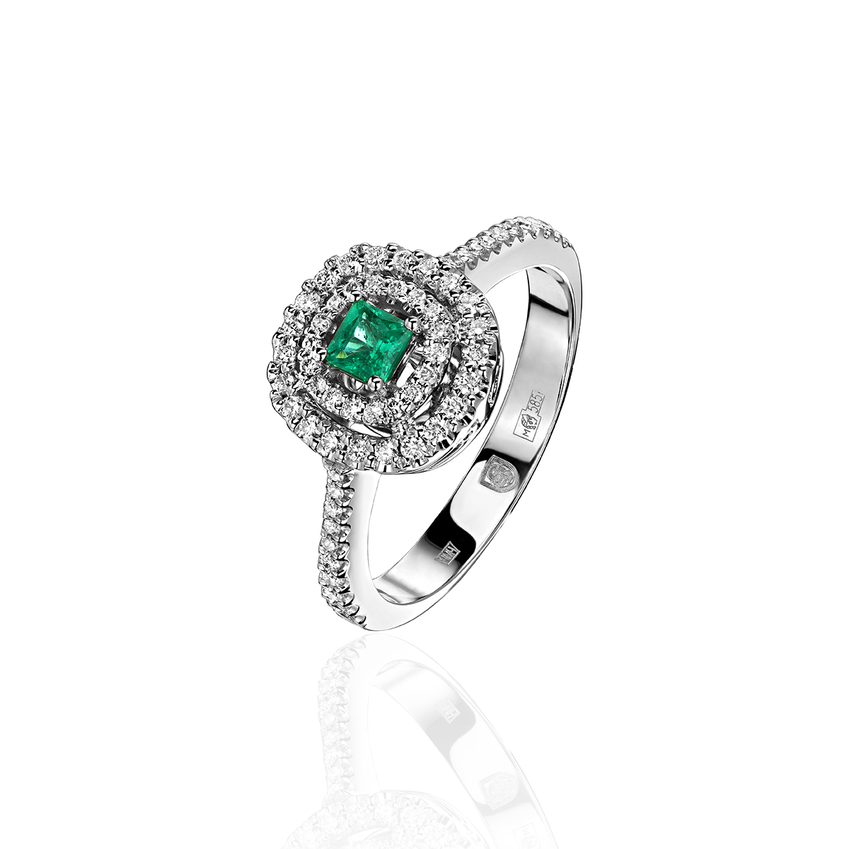 Кольцо из белого золота 585 пробы с изумрудом и бриллиантом 01К6213710-1