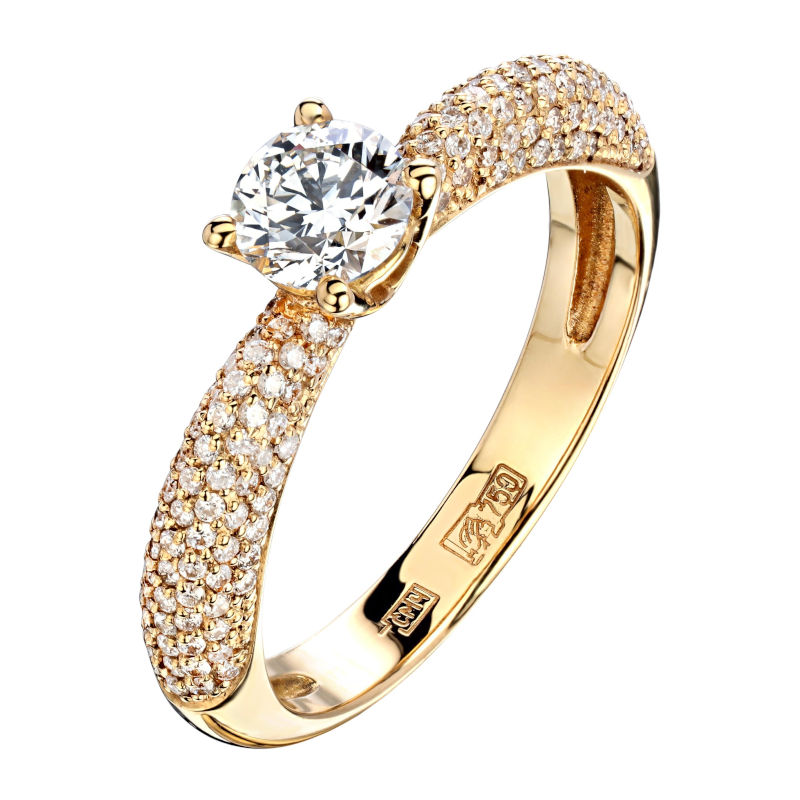 Кольцо из желтого золота 750 пробы с бриллиантами 01К644305