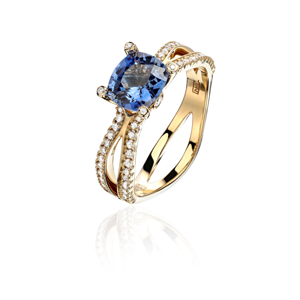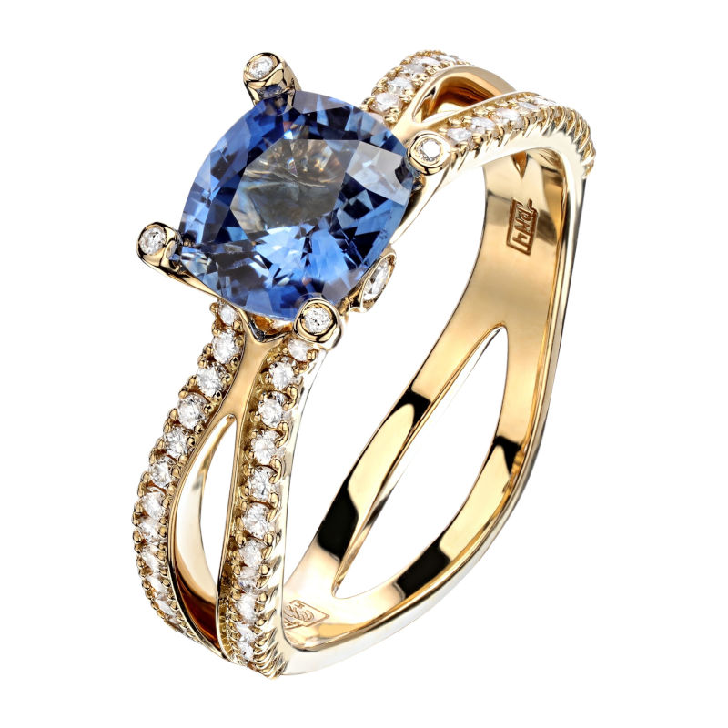 Кольцо из желтого золота 750 пробы с сапфиром и бриллиантами 01К6471106-1