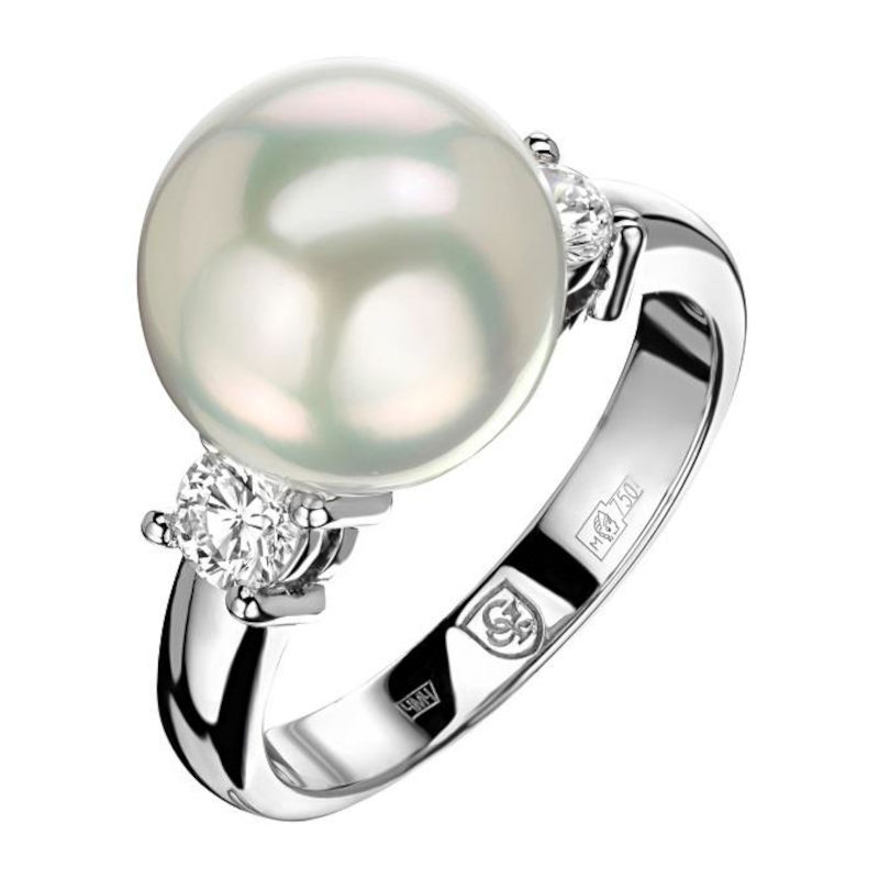 Кольцо из белого золота 750 пробы с жемчугом и бриллиантом 01К6712773-1