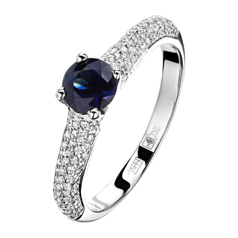 Кольцо из белого золота 750 пробы с сапфиром и бриллиантами 01К6731034-1