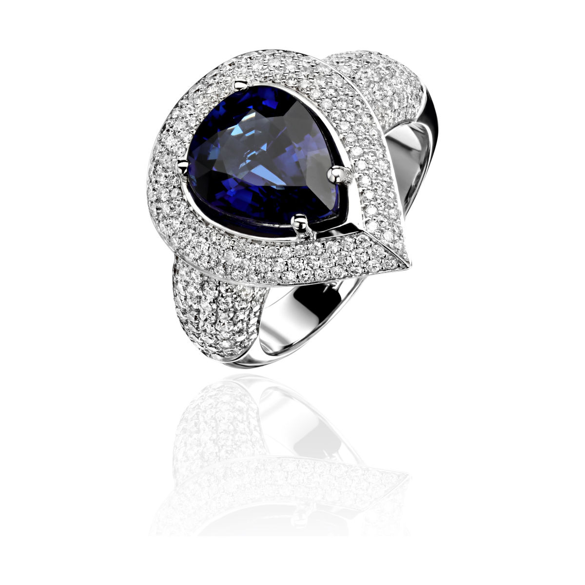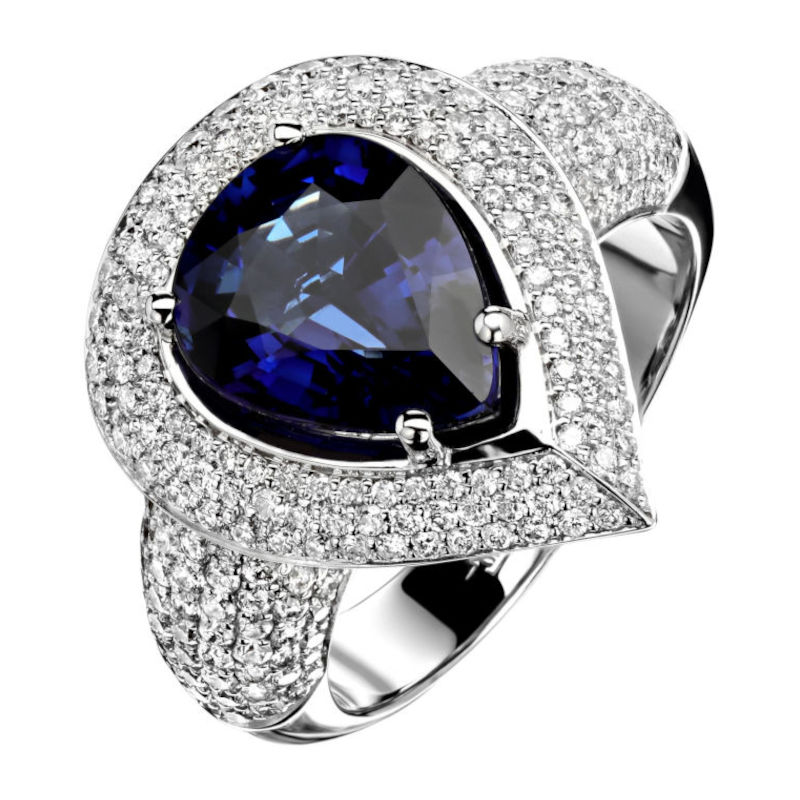 Кольцо из белого золота 750 пробы с бриллиантами и сапфиром 01К676928-1