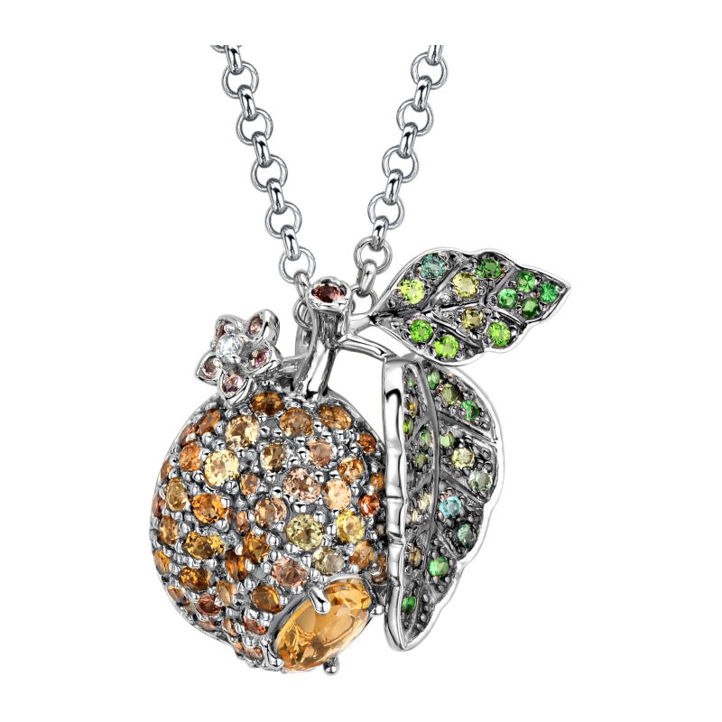 Колье из белого золота 585 пробы с бриллиантами, сапфирами, гиацинтами, тсаворитами, турмалинами, хромдиопсидами и цитринами 01Л6211050-9