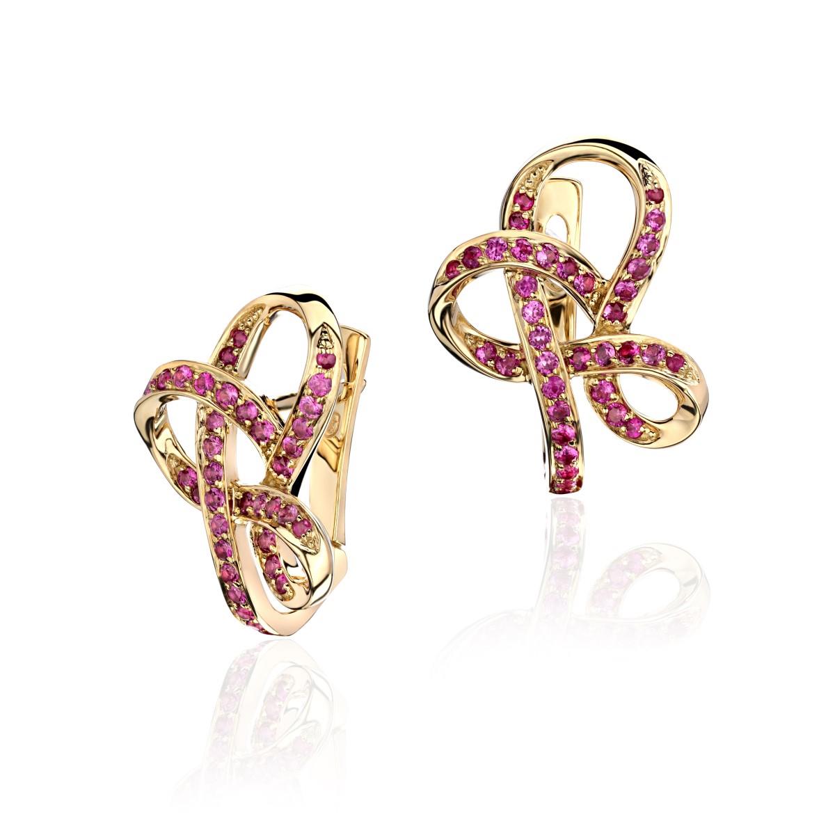 Серьги из желтого золота 750 пробы с рубином 01С546305-4