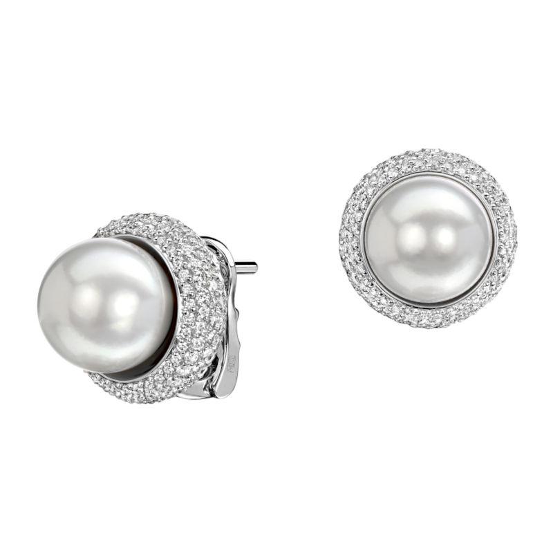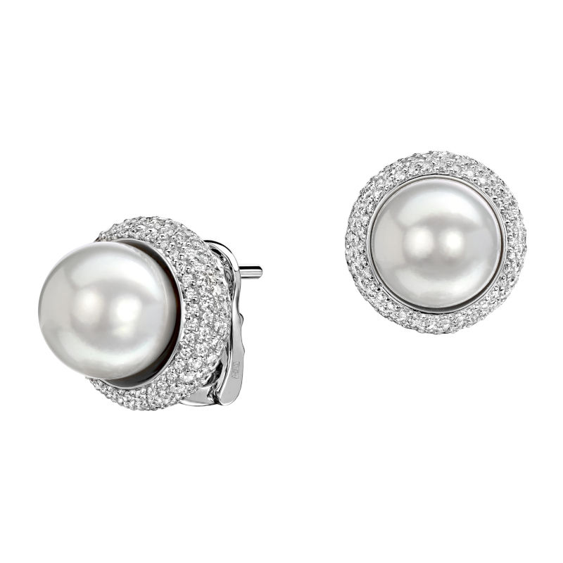 Серьги из белого золота 585 пробы с жемчугом и бриллиантами 01С6211281-1